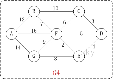 以上图G4为例,来对迪杰斯特拉进行算法演示(以第4个顶点D为起点)。