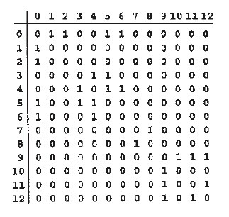邻接矩阵: 邻接矩阵是一个元素为bool值的VV矩阵,若图中存在一条连接顶点V和W的边,折矩阵adj[v][w]=1,否则为0。占用的空间为V V,当图是稠密时,邻接矩阵是比较合适的表达方法。