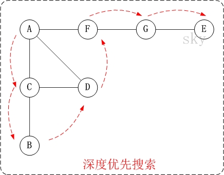 前面已经访问了A,并且访问完了”A的邻接点B的所有邻接点(包括递归的邻接点在内)”;因此,此时返回到访问A的另一个邻接点F。