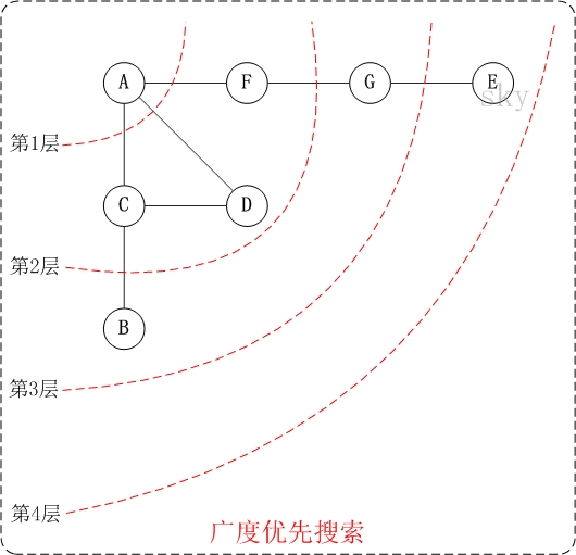 换句话说,广度优先搜索遍历图的过程是以v为起点,由近至远,依次访问和v有路径相通且路径长度为1,2…的顶点。
